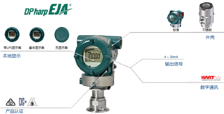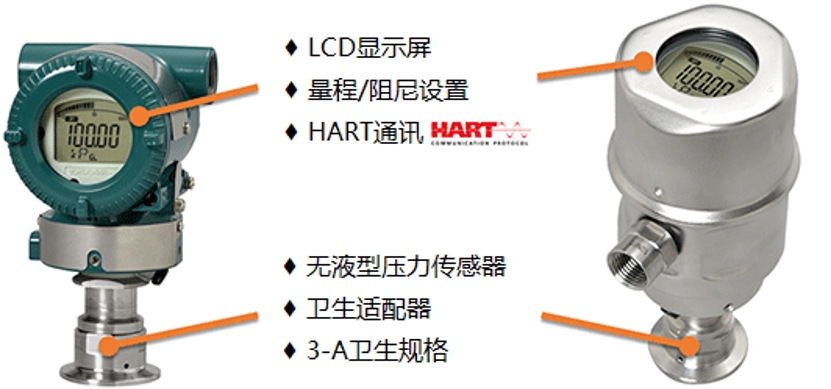 EJA系列的EJAC60E卫生型变送器,采用不使用封入液的无液型传感器,解决封入液泄漏风险,并搭载EJA系列的LCD显示器、量程设置和数字通讯等智能功能,实现卫生安全的智能压力测量,适用于食品/饮料/医药等行业。